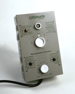 | Contrôleur Ultimate MicroClimat 329$ CAN - Active les ventilateurs d'extraction si la température et/ou l'humidité excèdent vos réglages. Dispositif sécuritaire assurant l'activation des ventilateurs d'extraction si la température excède 90F/32C. - Circuits individuels d'entrée et de sortie pouvant supporter deux ventilateurs d'extraction de 2 X 12" 865pcm. - Alimente et contrôle les rails d'éclairage ou les turbines de refroidissement d'éclairage. - Interrompu la nuit. - Alimente et contrôle le ventilateur de circulation intérieure -Toujours en marche. - Alimente et contrôle le purificateur d'air à charbon activé (865 pcm.) -Interrompu en période d'extraction. - Alimente et contrôle la minuterie pour le CO2. - Interrompu la nuit et en période d'extraction. - Alimente et contrôle le chauffe-solution ou un petit ventilateur d'extraction de CO2 en période nocturne - Alimente et contrôle un petit appareil de chauffage. - Interrompu en période diurne et en période d'extraction. |